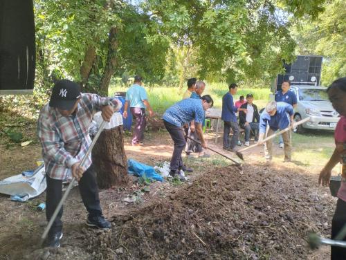 สำนักงานพัฒนาชุมชนอำเภอเหล่าเสือโก้ก โดยนายสุวัฒชัย บุ้งทอง พัฒนาการอำเภอเหล่าเสือโก้ก พร้อมด้วยนายอนุชา อุ้ยเส้ง นักวิชาการพัฒนาชุมชนชำนาญการ และทีมผู้นำตำบลเข้มแข็งตามหลักปรัชญาของเศรษฐกิจพอเพียงตำบลโพนเมือง จัดกิจกรรมลงแขกทำปุ๋ยหมัก เพื่อส่งเสริมกระบวนการเรียนรู้ร่วมกันในการผลิตและการใช้ปุ๋ยอินทรีย์ในภาคเกษตร และการปลูกพืชผักสวนครัวสร้างความมั่นคงทางอาหารในระดับครัวเรือน กลุ่มเป้าหมายผู้นำตำบลโพนเมือง หมู่บ้านละ 2 คน รวมทั้งหมด 34 คน ณ ศูนย์เรียนรู้ฯโคก หนอง นา บ้านนากลาง หมู่ที่ 17 ตำบลโพนเมือง อำเภอเหล่าเสือโก้ก จังหวัดอุบลราชธานี