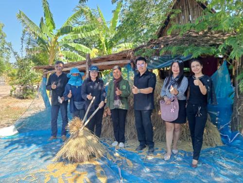 จากนั้นทางคณะได้ลงพื้นที่ติดตามสนับสนุนแปลงโคก หนอง นา ของนางสาวดั่งเดือน นาวาบุญนิยม พื้นที่โครงการ 1 ไร่ แปลงศูนย์เรียนรู้หมู่บ้านเศรษฐกิจพอเพียงบ้านดอนสะแบง หมู่ที่ 12 ตำบลหนองบก อำเภอเหล่าเสือโก้ก จังหวัดอุบลราชธานี