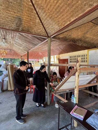 สำนักงานพัฒนาชุมชนอำเภอเหล่าเสือโก้ก โดยนายสุวัฒชัย บุ้งทอง พัฒนาการอำเภอเหล่าเสือโก้ก พร้อมด้วยเจ้าหน้าที่พัฒนาชุมชน ลงพื้นที่ติดตามเยี่ยมให้กำลังใจกลุ่มสตรีในพื้นที่ตำบลเหล่าเสือโก้ก ที่เข้าร่วมการฝึกอบรมอาชีพการทอผ้า โดยกิจกรรมนี้ได้รับงบประมาณสนับสนุนจากศูนย์เรียนรู้การพัฒนาสตรีและครอบครัวภาคตะวันออกเฉียงเหนือ จังหวัดศรีสะเกษ นอกจากนี้ยังติดตามการเตรียมความพร้อมการจัดงานบุญกุ้มข้าวใหญ่วัดชัยมงคล ที่จะจัดขึ้นระหว่างวันที่ 31 ธันวาคม 2568 ถึง 1 มกราคม 2569 ซึ่งเป็นกิจกรรมที่จัดขึ้นโดยชุมชนเพื่ออนุรักษ์สืบสานงานบุญประเพณีที่ดีงามของชุมชน และเป็นการต่อยอดการการส่งเสริมการแปรรูปผลผลิตจากข้าวไปสู่ผลิตภัณฑ์ชุมชนต่อไป